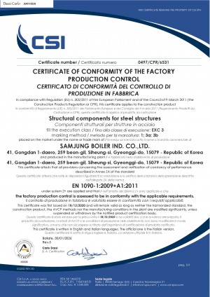 CE CPR EN 1090 인증 - 공장 생산 관리의 적합성