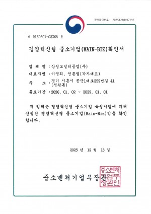 경영혁신형 중소기업(Main-Biz) 확인서